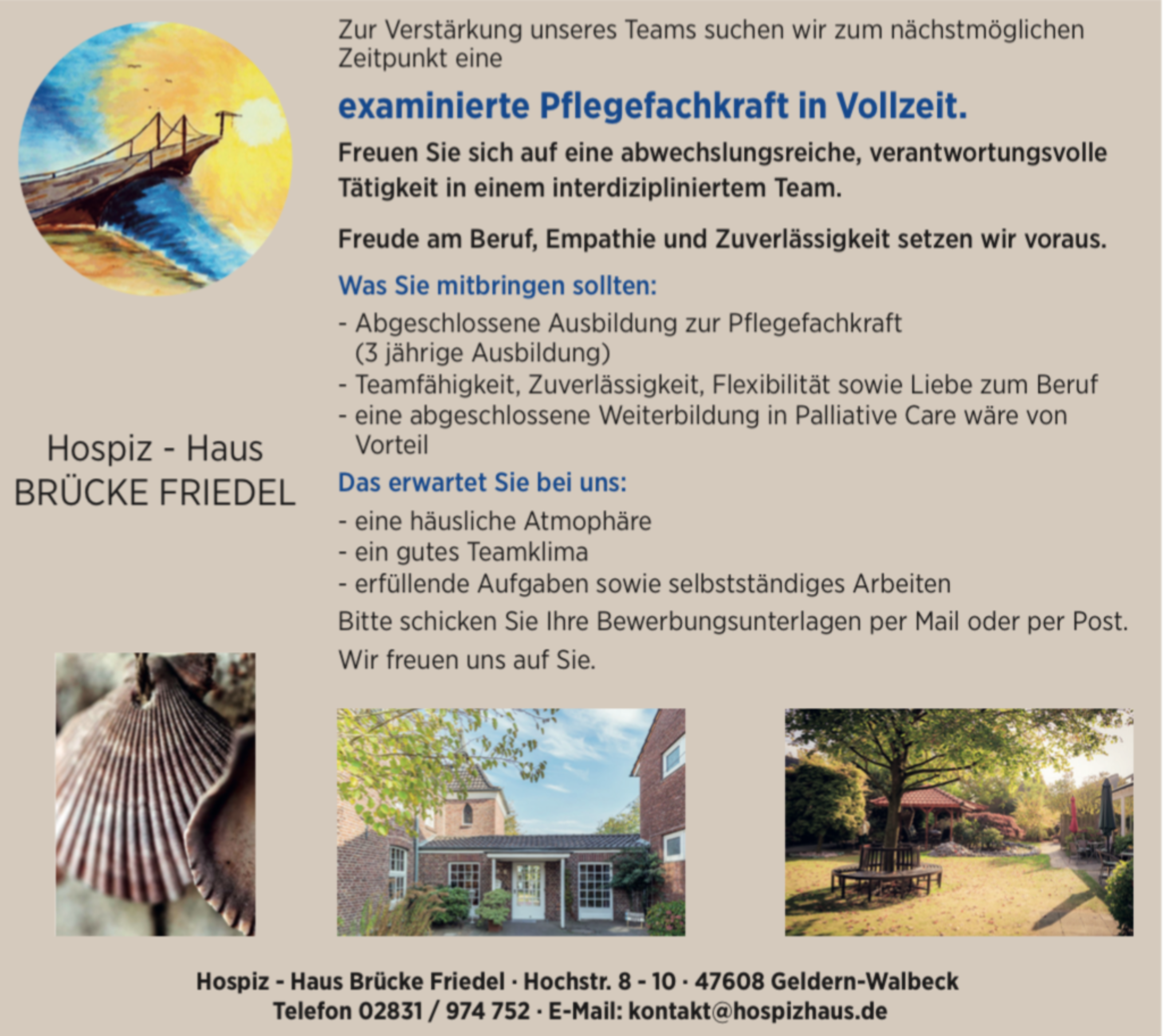 Für die verschiedenen Aufgaben in unserem Hospiz veröffentlichen wir hier Stellenangebote in den folgenden Bereichen: